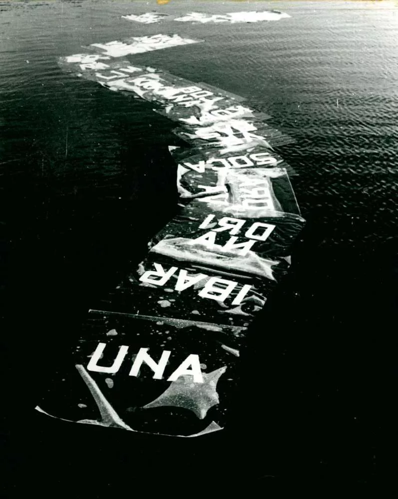 →Rivers Transmission, action au bord du lac Léman, Espace-Situation Gallery Impact, Montreux, juillet 1972
