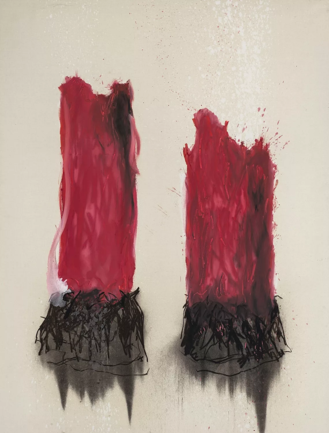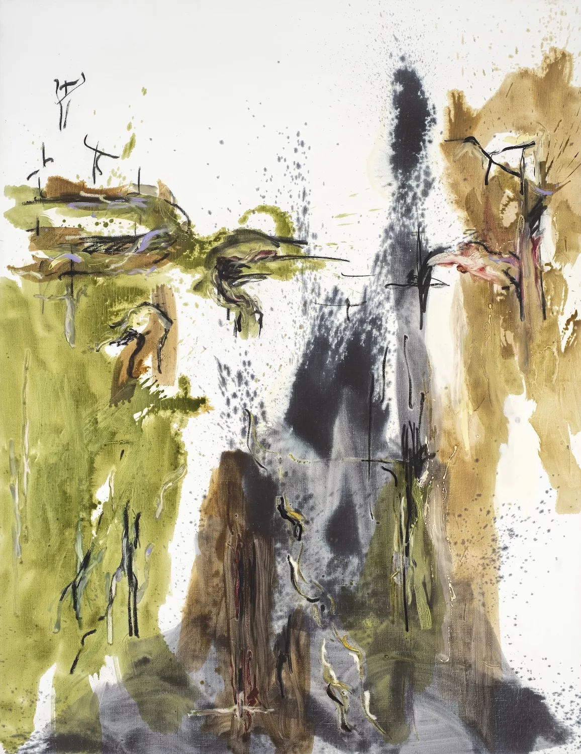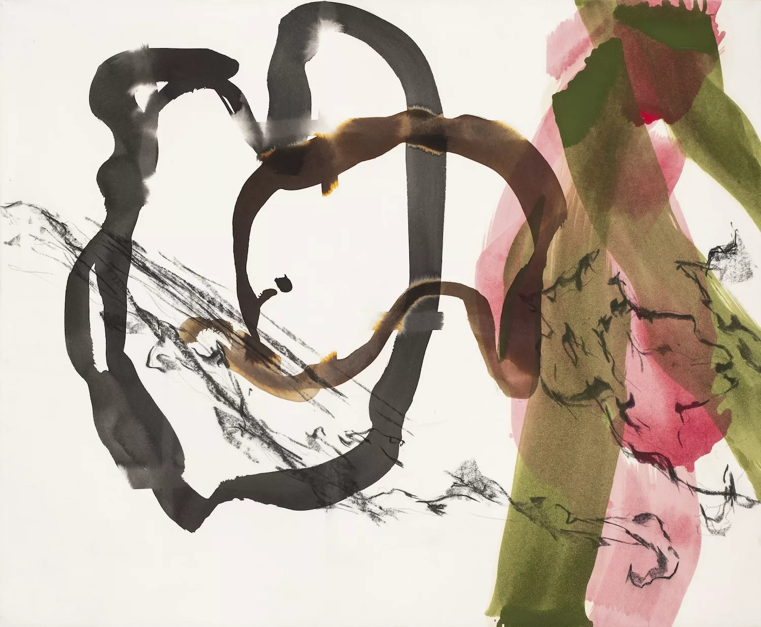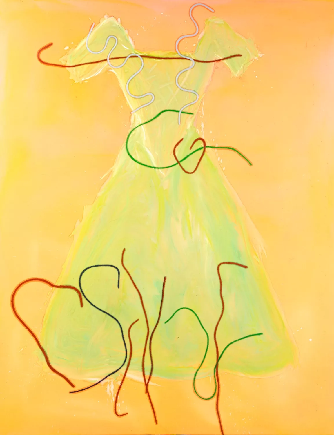 L’un des autres principes fondateurs de sa création est ce qu’elle nomme la dé-liaison, quand les éléments perdent leur ancrage aux autres, quand la couleur se décale du trait et que les plans se disloquent et perdent toute échelle et mesure. Et l’idée de la strate qui, en reprenant des toiles déjà peintes, deviennent le soubassement d’une création originale. Les peintures sont partiellement recouvertes de fragments de toile ancienne monochrome et donnent à voir un assemblage d’images constitué de dessins, de peinture et de champs colorés découpés.