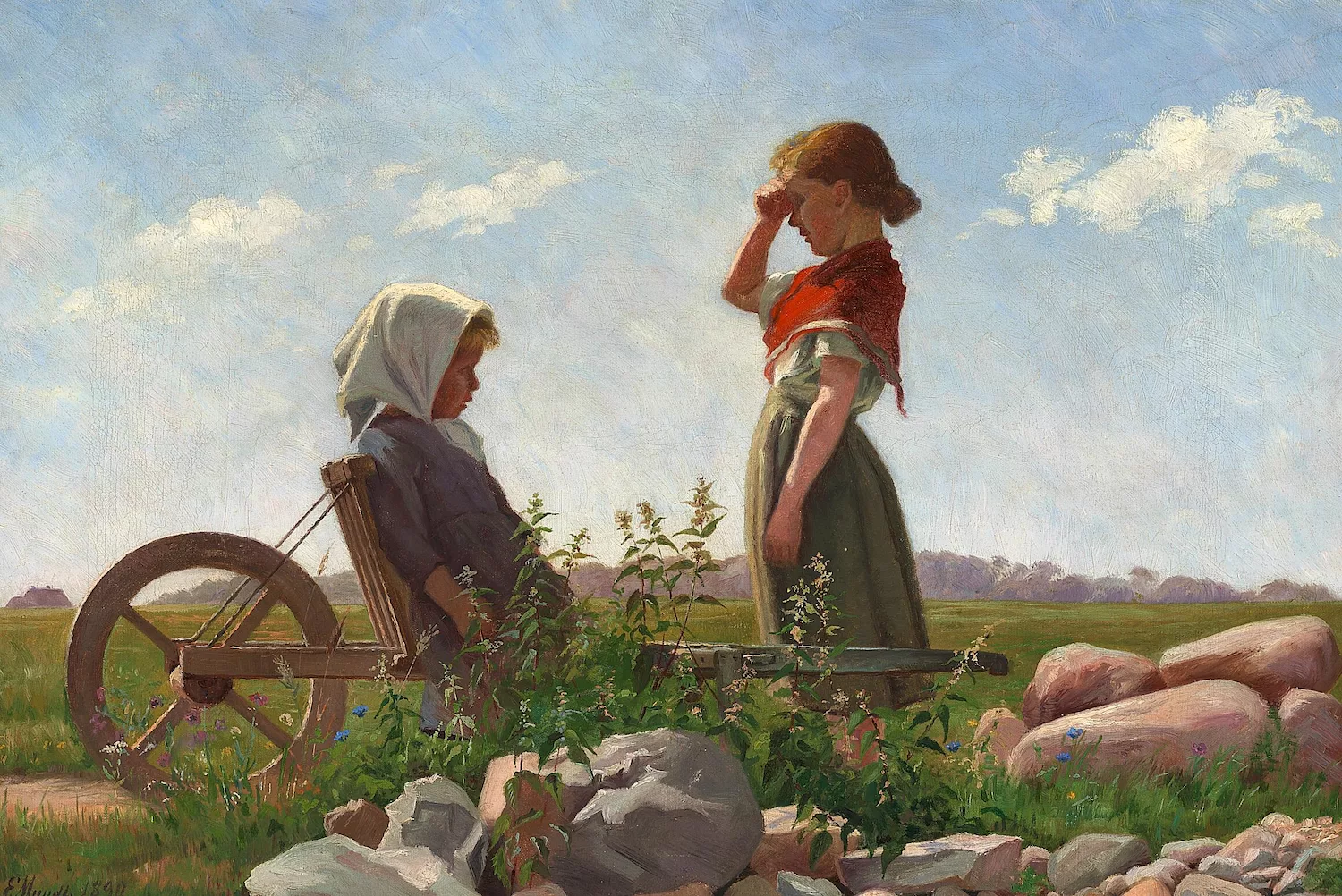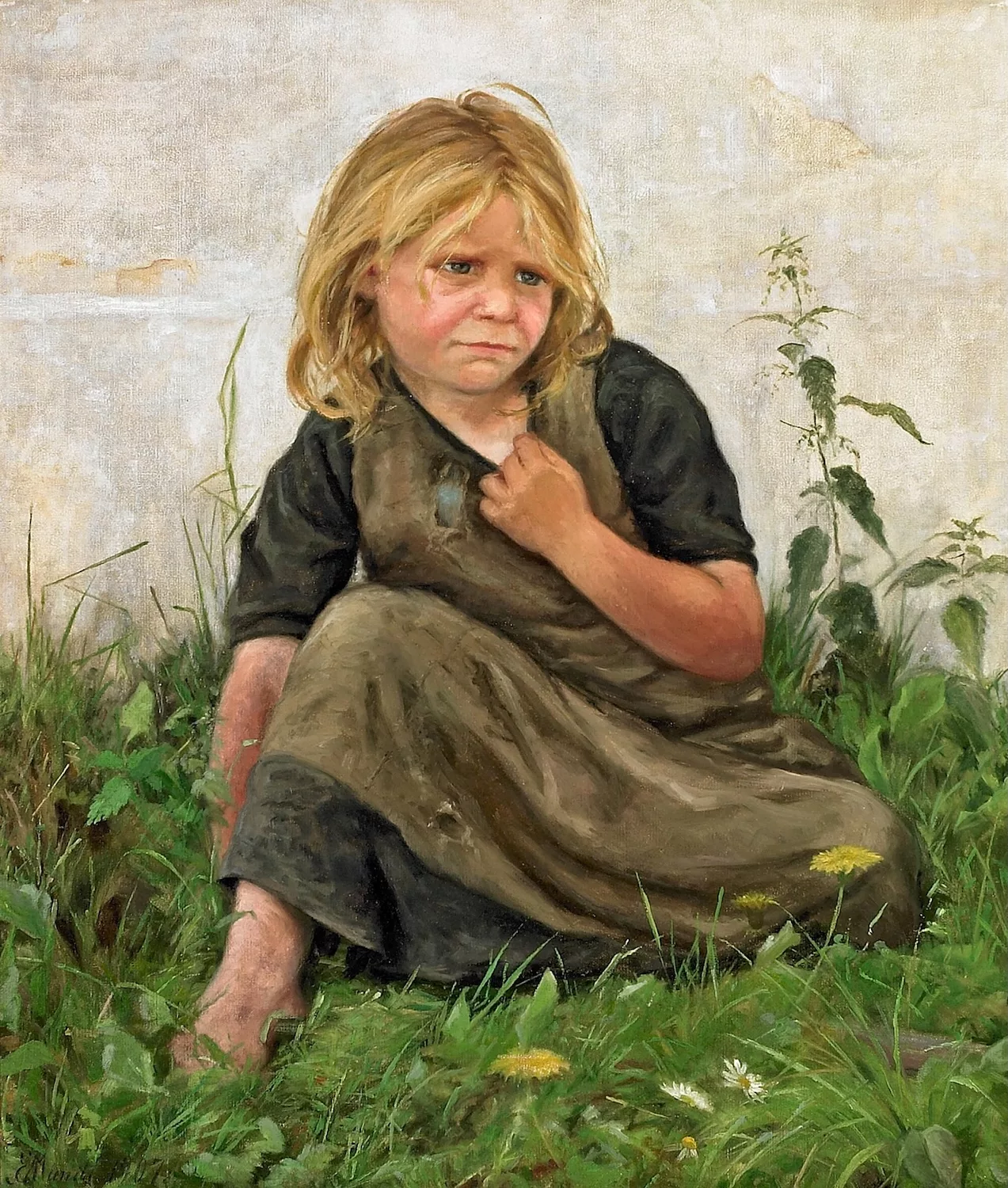 E. Mundt présente ses propres œuvres au public pour la première fois à l’Exposition de printemps du palais de Charlottenborg de 1878. De 1882 à 1884, elle étudie à l’Académie Colarossi, à Paris, où elle reçoit l’enseignement des peintres Raphaël Collin (1850-1916) et Gustave Courtois (1852-1923). Elle fait aussi des voyages d’étude en France et en Italie. En 1886, elle présente à l’Exposition de printemps de Charlottenborg la peinture Fra asylet i Istedgade [De l’asile d’Istedgade, 1886], une œuvre inspirée par le réalisme français qu’elle a découvert à l’étranger. Le tableau émeut le public danois en raison de son motif social réaliste. Les peintures d’E. Mundt représentent souvent des enfants, comme dans To piger på tur [Balade en brouette, 1890] et Portræt af pige siddende i græsset [Portrait d’une fille assise dans l’herbe, 1907], et sont parfois lues comme une critique sociale visuelle. Si le fait d’exprimer une telle critique est alors courant au sein du mouvement pour les droits des femmes, la représenter par le biais des beaux-arts est une chose nouvelle au Danemark. En 1891, l’œuvre Fra asylet i Istedgade est exposée à Paris, où elle reçoit les louanges du journal féministe La Citoyenne.