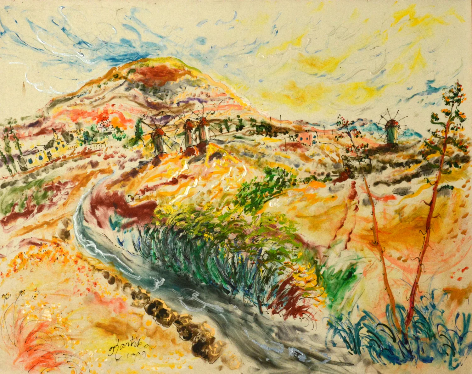 À partir du début des années 1980, Kartika crée une série d’autoportraits psychologiques expressifs, où elle explore la souffrance des femmes de manière symbolique et graphique, comme dans deux peintures à l’huile de 1981, Le Temps du commencement et Renaissance. Elle est surtout connue pour ses scènes villageoises, ses bateaux de pêche colorés et ses paysages montagneux, comme Vue de paysage, Grèce (1999). Elle peint directement sur place – que cela soit à la plage, sous la neige, en ville ou dans le désert. Elle produit aussi une série de portraits de familles de peuples autochtones d’Australie et de Nouvelle-Guinée occidentale, ainsi que des représentations de la souffrance humaine et animale, et oscille entre l’humour (Chienne et ses chiots, 1969) et le réalisme expressif (Grand-père et petit-fils, 1994).