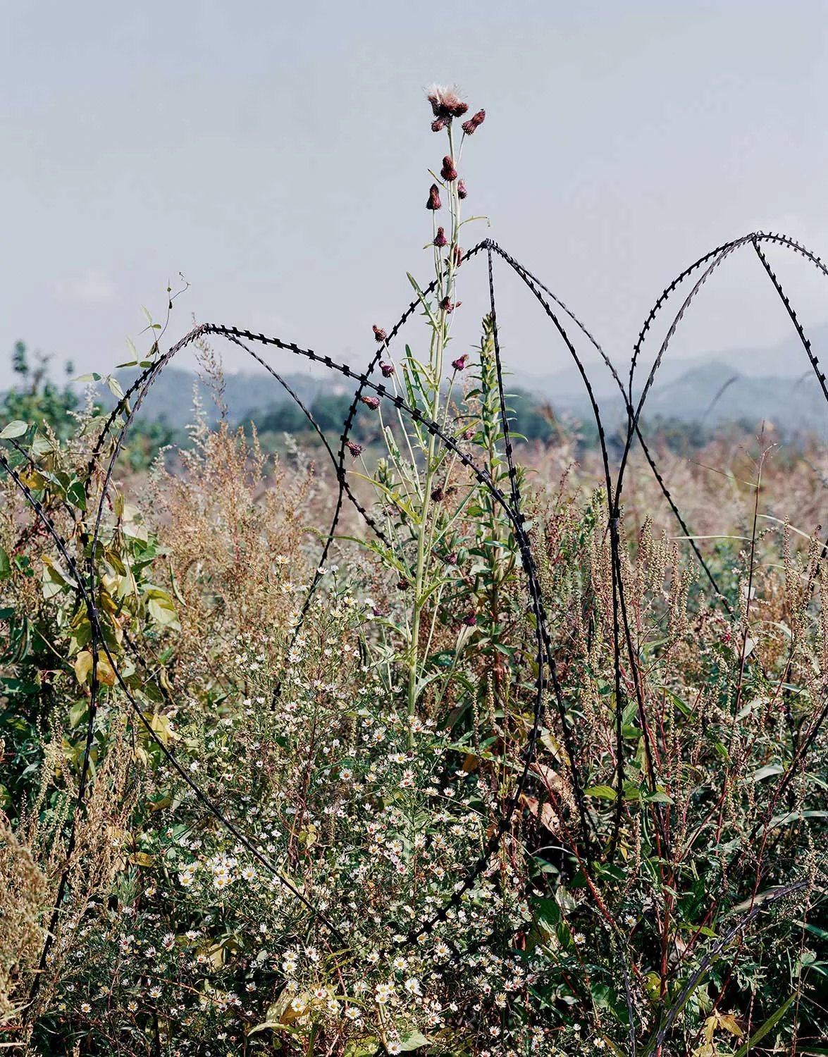 Sa série Scene, quant à elle, choisit de se concentrer sur des lieux, plutôt que sur des personnes. Elle photographie avec sobriété des endroits qui ont été le théâtre d’événements historiques majeurs, comme le bois Delville, où s’est déroulée la bataille de la Somme, la gare de Harbin en Chine, où fut assassiné l’ancien Premier ministre japonais Hirobumi Itō, ou encore la zone démilitarisée qui sépare le nord et le sud de la péninsule coréenne. À première vue, ces paysages semblent on ne peut plus banals, mais le titre de l’œuvre suggère ce qu’il s’y est passé, provoquant chez le spectateur ou la spectatrice un changement radical du regard. Face à Bīchī – Norumandei jōriku sakusen no kaigan/Sōdo Bīchī, Furansu [La Plage – Une des plages du débarquement en Normandie, Sword Beach, France, 2002], on ne peut que superposer à cette image de vacanciers, profitant avec nonchalance d’un moment de détente sur le sable, la vision des nombreux soldats rampant entre les vagues pour atteindre la terre en 1944. Avec son appareil optique, T. Yoneda fait resurgir la mémoire collective qui n’est pas gravée sur la pellicule.