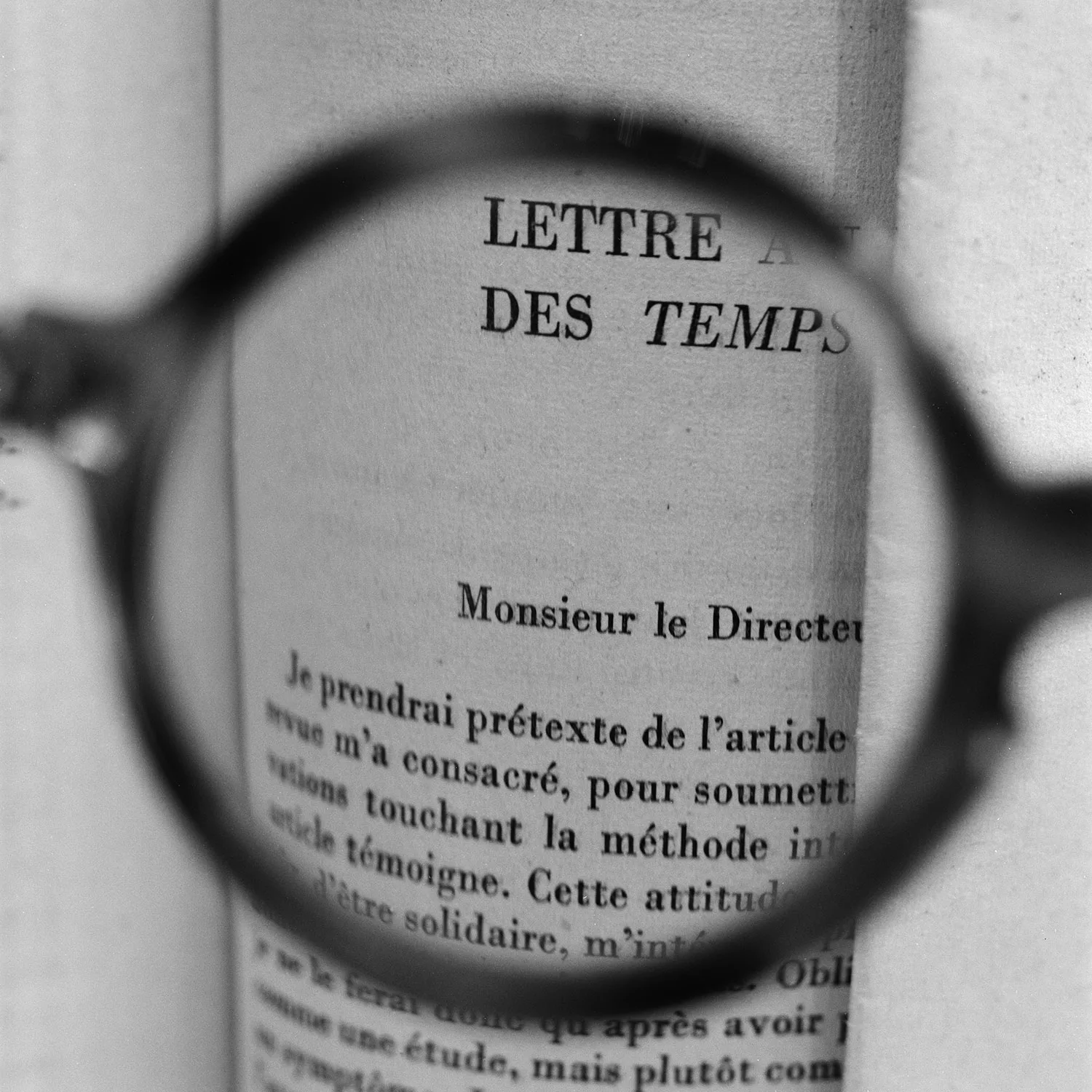 Dans une de ses séries les plus célèbres, Between Visible and Invisible, elle photographie, à travers le verre des lunettes de figures emblématiques des temps modernes, comme Bertolt Brecht, Jean-Paul Sartre ou Léonard Tsuguharu Foujita, des documents qui leur sont liés. Par exemple, Furoito no megane – yungu no tekisuto o miru II [Les Lunettes de Freud : regarder un texte de Jung II, 1998] montre, à travers le regard de Sigmund Freud lui-même, une page de la théorie de la libido développée par Carl Jung, un disciple dans lequel S. Freud espérait voir un successeur avant que les deux hommes ne se séparent. Sachant cela, nous autres spectateur·rices ne pouvons nous empêcher d’imaginer les sentiments de S. Freud à cette lecture. T. Yoneda fait ainsi revivre de façon intime les émotions ou la mémoire de personnalités données, tout en suggérant les tournants historiques qu’ils impliquent et qui transcendent le niveau purement individuel de ces figures.