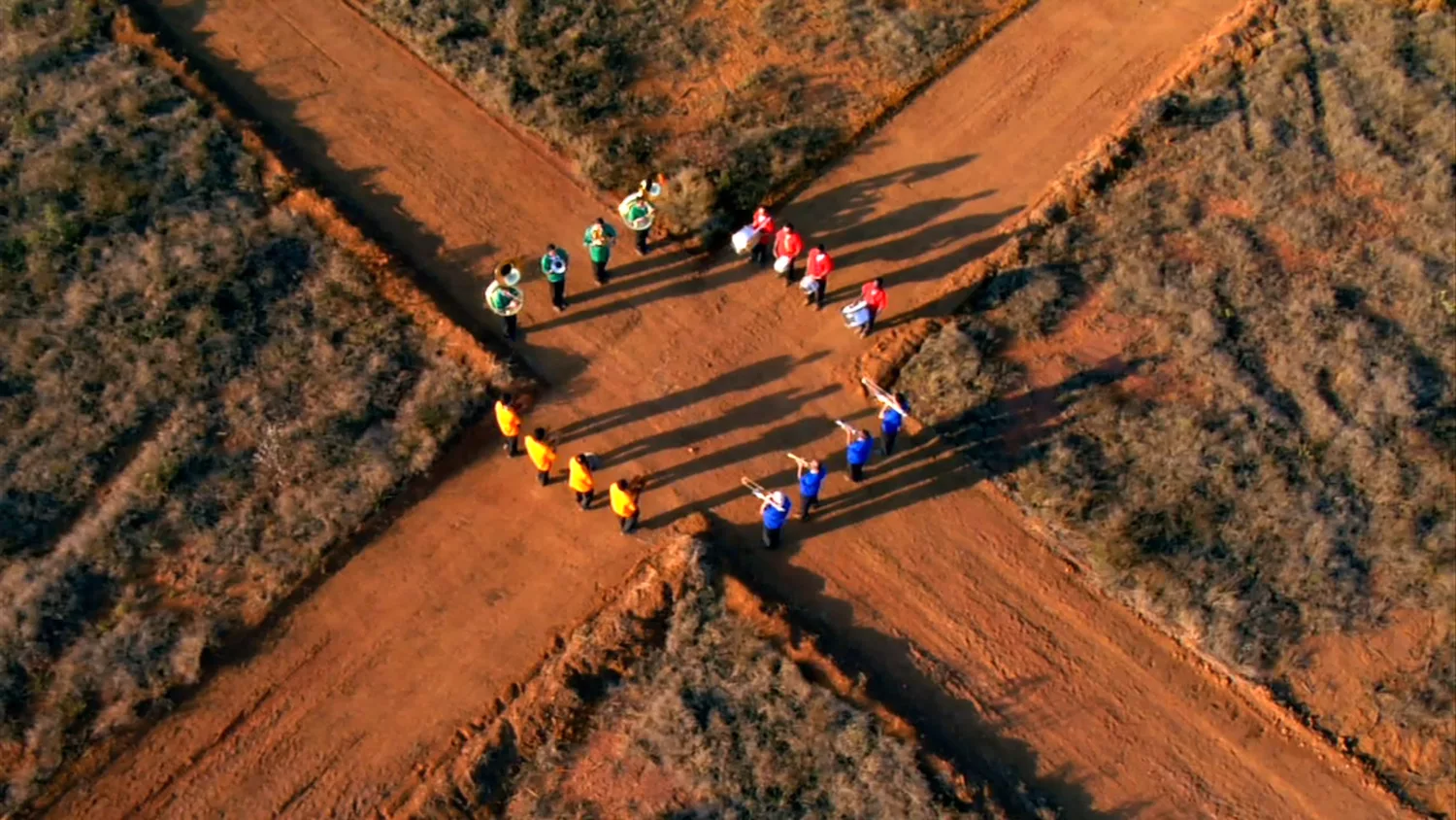 慎重に計画された介入と行動は、重大なトピックを扱う合成イメージを生み出すことができ、シンシア・マルセル(1974年生まれ)の作品ではとりわけ大きな力を発揮する。パフォーマンス、ビデオ、アクション、写真、彫刻、インスタレーションを駆使した非言語的な作品は、社会構造、行動パターン、力関係に疑問を投げかけている。キュレーターのヨッヘン・ヴォルツが述べたように、「思考を実験に変換したものであり、アートとは物事に疑問を投げかける行為にほかならないという明確な立場を、究極的にイメージに変換した実験」である2。マルセルのビデオ・パフォーマンス3部作《十字軍(Cruzada)》(2010年)《出典(Fonte)》(2007年)《戻る(Volver)》(2009年)は、消防車、バックホウ(掘削機)、そして不揃いな音楽家たちが、マルセルの故郷、ミナス・ジェライス州の赤土の上で、一見ランダムな動きを展開する(同州は、鉄鉱石採掘産業によって、地域の環境と経済の運命が左右されている)。これらの編成されたジェスチャーを通して、マルセルは可視性のシステムと権力の美学に疑問を投げかけ、鑑賞者の役割を受動的な観察者に止めようとする見方に挑んでいる。