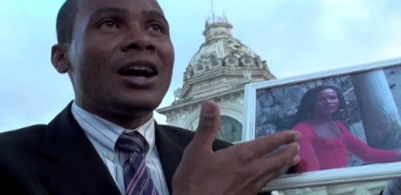 モレイラの《パカエンブーの婦人(A Dama do Pacaembu)》(1981年)は、タイトルにもなっている裕福なパカエンブー地区の路上で暮らし、周囲の退廃的な 「貴族」の一員であると信じている女性の言説を通して、微妙な皮肉を込めてブラジルの不平等に迫っている。モレイラは、進歩的な大義を支持し、権力の濫用に反対し、ビデオアート制作を通したアクティビズムを続けている。近年の作品《マリエルのためのレズビアンの行進(Caminhada Lésbica por Marielle)》(2018年)は、2018年にリオデジャネイロの下院議員マリエル・フランコが暗殺された事件について、フェミニストとLGBTQIA+の活動家たちが起こした抗議行動を記録している。暴力が拡大し、記録的な数の女性がフェミサイド(ジェンダーが関連した動機による故意の殺人)の犠牲になっているこの国で、2人の警察官がフランコの殺人容疑で起訴されたのは2024年になってからのことだった。