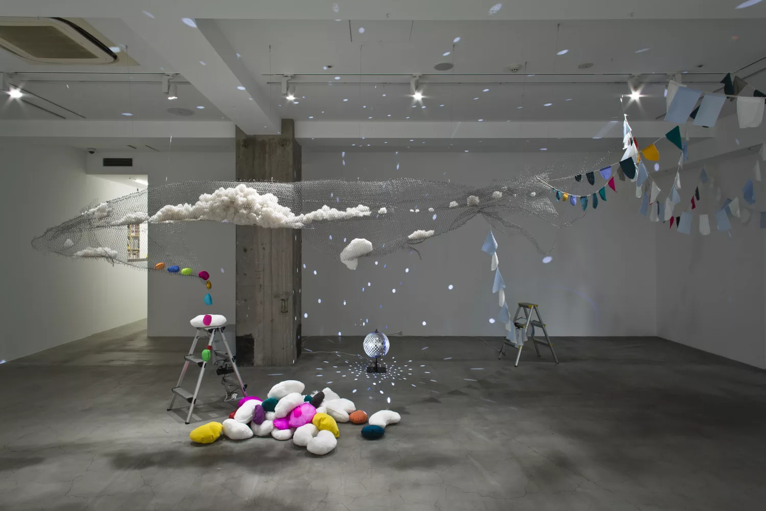 設営風景:「ブブ・ド・ラ・マドレーヌ:人魚の領土−旗と内蔵」オオタファインアーツ(東京)2022年