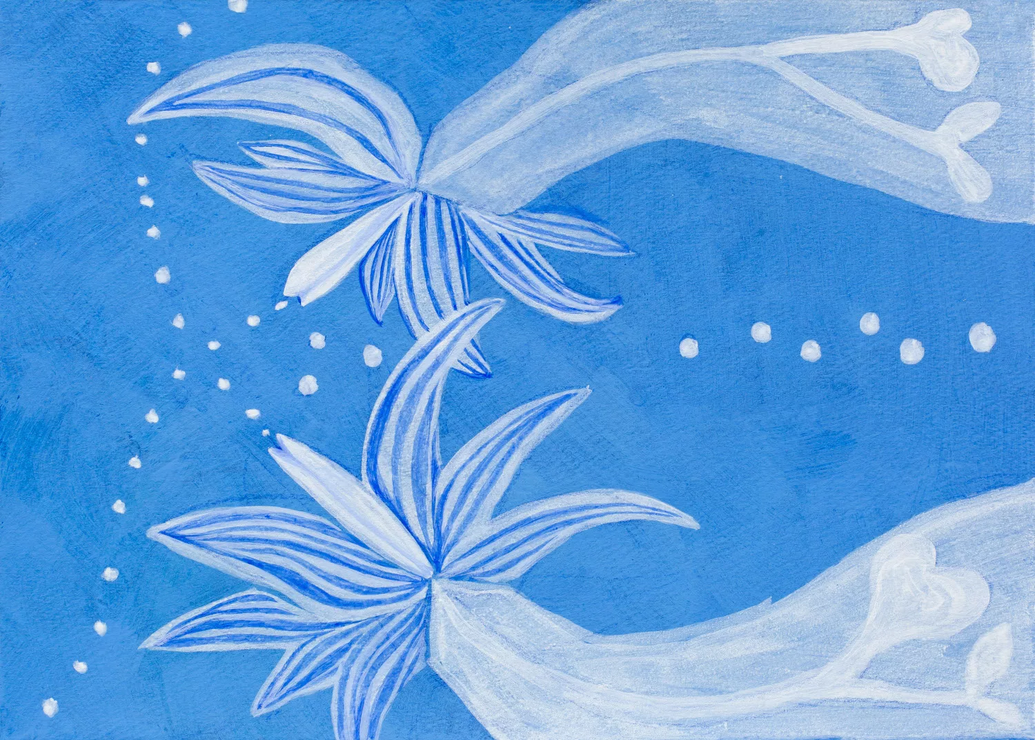 映像作品《甘い生活》(2001年)において、ブブ・ド・ラ・マドレーヌが暗い浜辺に横たわり、その裸体が海と陸を橋渡しする。本作を経て「人魚の領土」という主題に辿り着いたブブは、2004年、《人魚の領土/八月の水》を制作した。親友の死をきっかけとして、ブブは、人魚がどのような存在を象徴しうるかを探求し始めたのだ。当時のブブにとって、人魚は死者の世界である海と陸地の間の荒波に抵抗する存在だった。2010年代、ブブはセックスワーカーとしての日々の暮らしを通して、自身の身体と他者の身体の境界をより意識するようになった。これは、家族を家庭内で介護する経験によってさらに深まった。個人の身体が最初に侵害され、個人的な境界が侵入される瞬間は、触れる、あるいは触れられる瞬間と定義できるだろう。それには異なる二種類がある。ひとつは、友情や気遣いの表現としてであり、もうひとつは、征服し攻撃したいという願望として、である。こうした複数の侵害は、より大きな規模で、民族、ジェンダー、セクシュアリティなどに対して、国境において繰り返されている。そして、私たちの日常生活は、こうした攻撃にさらされ続けている。ブブは、人魚の巣窟であり縄張りである水こそが、女性をはじめとする抑圧された少数派が生きられる世界のメタファーとなり得ると考えるに至った。