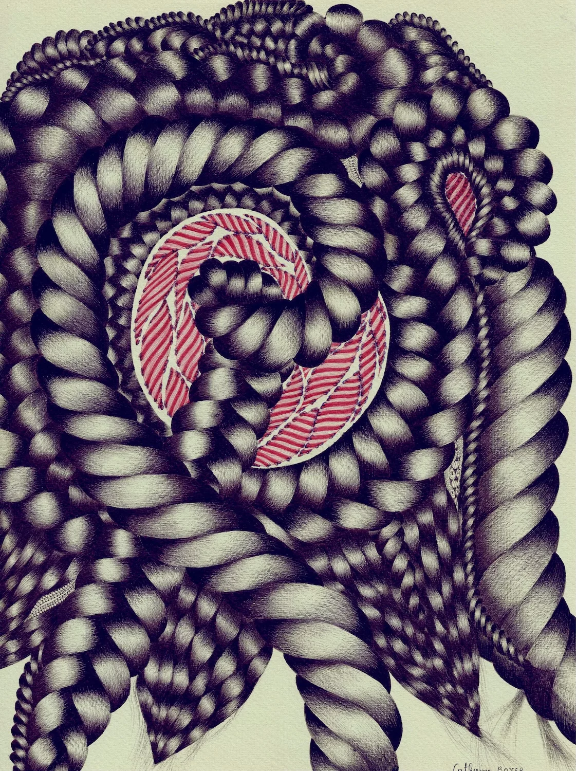 The impression that drawing is “like running downhill” is the driving force behind the finely wrought and sensitive yet striking work of Catherine Boyer. “There is an unfathomable richness in drawing”, she explains. “With a fine-point pencil between my fingers, I can dig into the details, and it’s in the details that we reveal ourselves. Especially as women.”