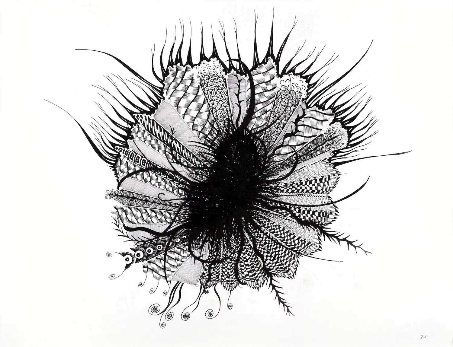 After attending art workshops offered by the Réunion-based cultural nonprofit Village Titan − the forerunner of the city of Le Port’s art school − and then earning the national advanced diploma in fine arts at the École des Beaux-Arts in Marseille, C. Boyer returned to her native island, where she worked as a secondary school teacher for nearly twenty years while continuing her artistic practice. Long ignored, her work began to attract the attention of art institutions in the first decade of the millennium. A solo exhibition, Dessus, Dessous, was devoted to her work at FRAC Réunion in 1998, followed by another at Galerie Hang’Art in Saint-Pierre titled Jouissances Océaniques in 2022–2023. In 2011, between these two milestones, she exhibited at the international Drawing Now fair in Paris and at the Joburg Art Fair in Johannesburg, represented by Galerie Binoche. She then participated in various group exhibitions, including L’Envers de l’Île at the Léon Dierx museum in Saint-Denis in Réunion in 2015, the Festival d’Arts Contemporains in the Comoros in 2016, Rêver l’Obscur at Galerie The Bridge in Paris in 2022, Mutual Core at the Artothèque in Réunion in 2021 and “Astèr Atèrla”, presented both at the Centre de Création Contemporaine Olivier Debré in Tours and at La Friche la Belle de Mai in Marseille in 2024 – an exhibition organised by curator Julie Crenn and FRAC Réunion. Some of her works belong to the collections of the Artothèque, FRAC Réunion and the Réunion region.