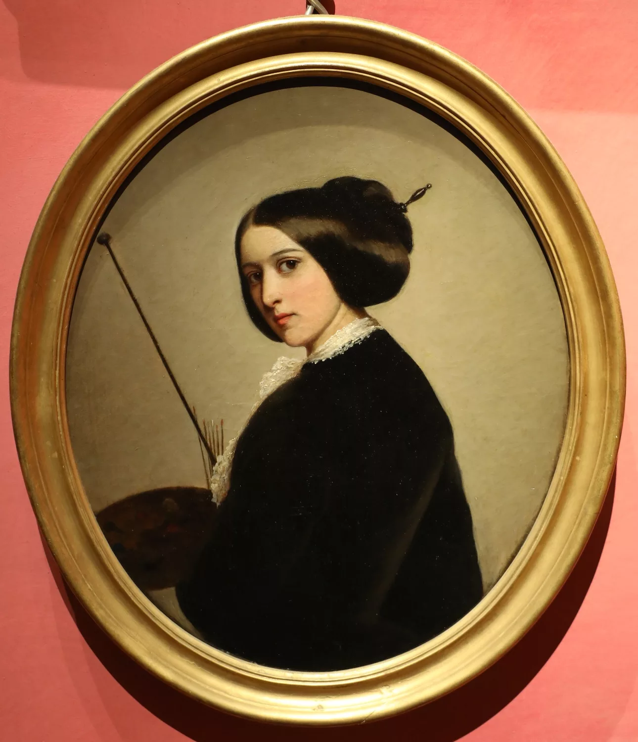 Her works were exhibited at the Royal Academy of Arts in 1851, where her Portrait of a Lady caught the attention of Queen Victoria. The monarch commissioned a self-portrait from the artist, completed in 1853 and today preserved in the Royal Collection (RCIN 408920) with five other paintings representing different allegories. Another self-portrait, long misattributed to Rosa Bonheur (1822–1899), was correctly identified as E. Gaggiotti’s after a restoration in 2010 uncovered her signature; the painting is now in the Galleria Palatina in Florence, in the section dedicated to self-portaits.