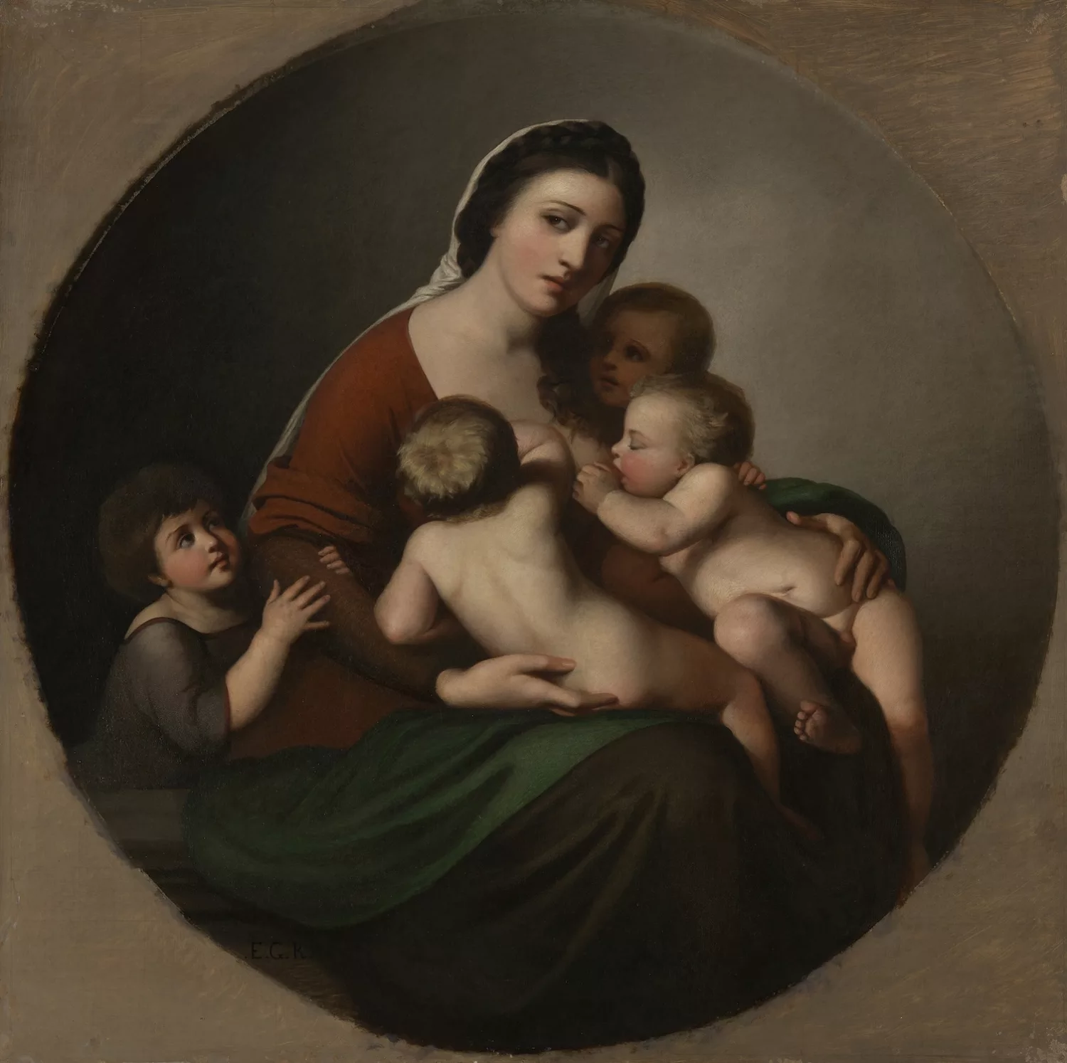 Emma Gaggiotti (Richards) was amongst the few Italian women artists of the 19th century to attain international recognition during her lifetime. She began her training in Ancona under the Purist painter Nicola Consoni (1814–1884) and later refined her technique in Rome in the studio of Tommaso Minardi (1787–1871), one of the leading figures of the Purist movement. Her early presence in the Roman artistic milieu is recorded in the memoirs of Francesco Hayez, who mentioned drawing her during a stay in the city. A further sign of their connection is F. Hayez’s now-lost Portrait of Angiolina Gaggiotti (1834), a depiction of the artist’s mother.
