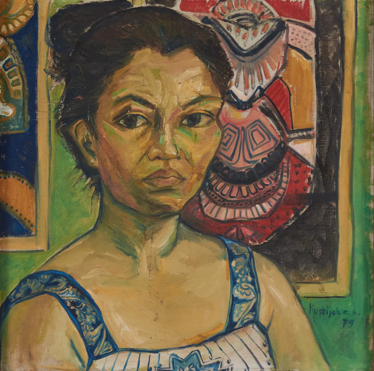 A number of portraits of Kustiyah were made by her contemporaries and are held today in state as well as private collections. She also painted a number of self-portraits and is said to have painted all of her children and grandchildren, although the whereabouts of these portraits are not yet known – with the exception of one, entitled Anakku Ira [My Daughter Ira, 1969].