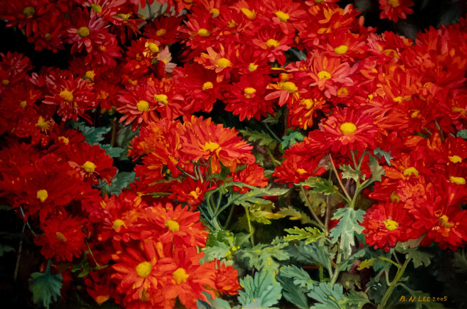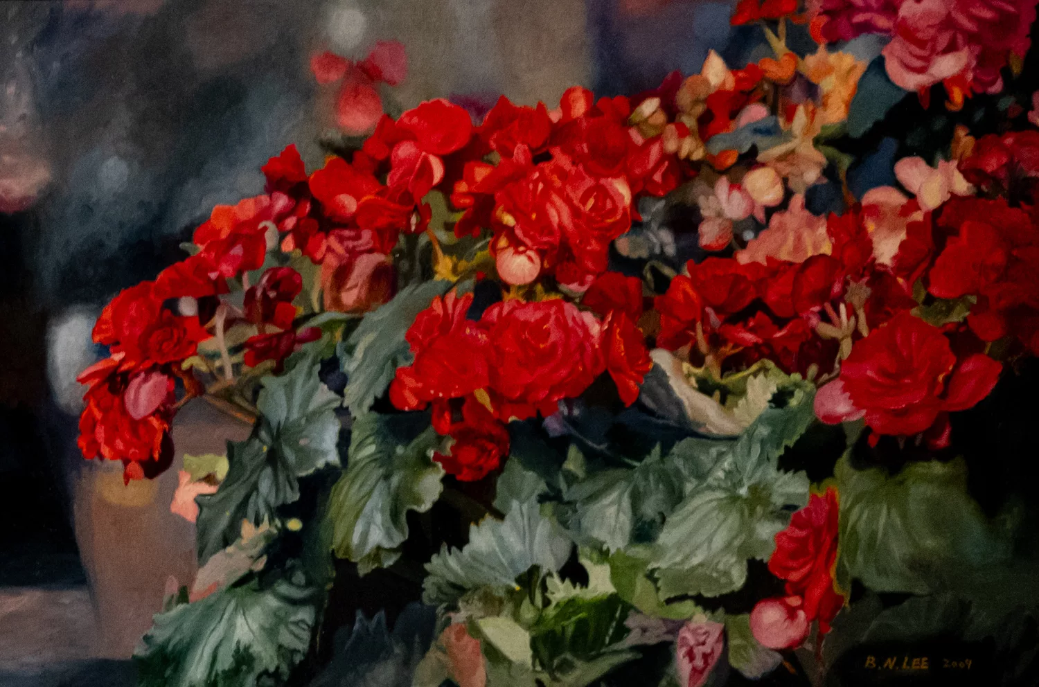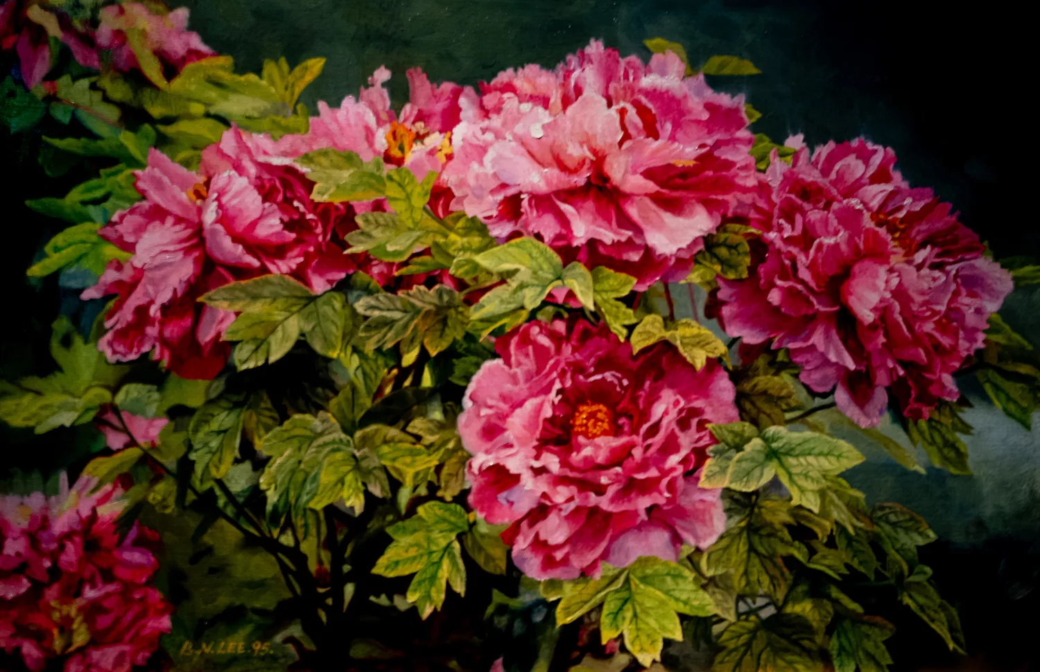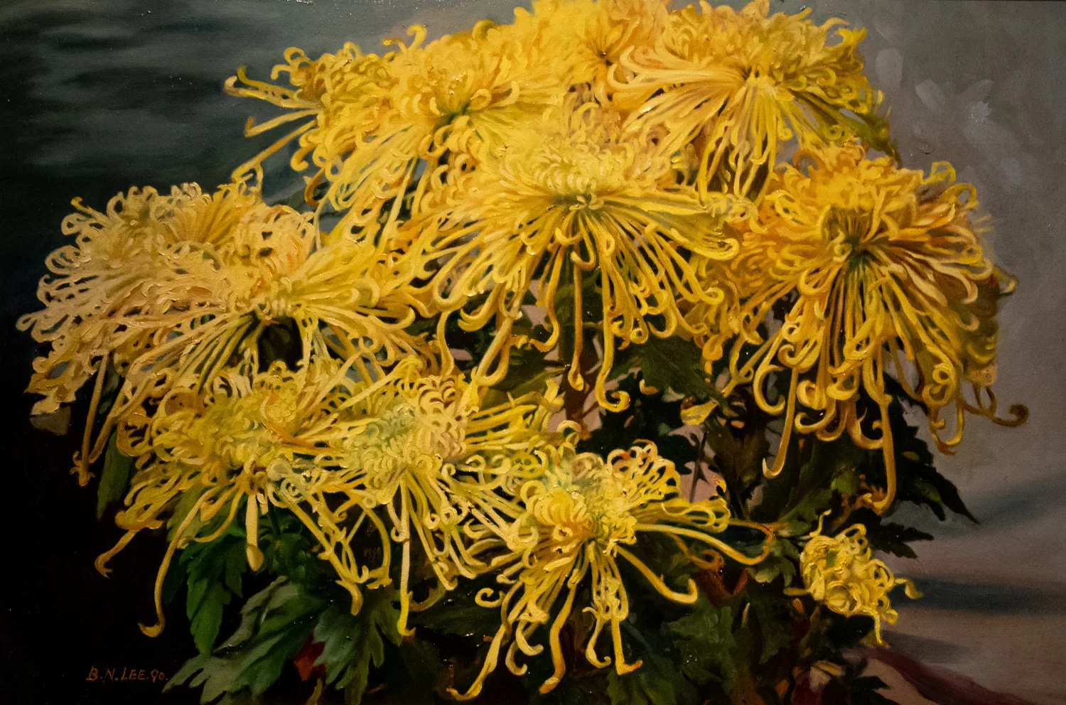 This artistic evolution reflected more than technical experimentation; it embodied Lee’s contemplative practice, rooted in patient observation of botanical subjects – the seasonal cycles of flowering and growth, the daily patterns of light in her window-side studio and the sustained attention required to capture the liveliness she saw in flowers. She expressed particular admiration for French painter Jean-Baptiste-Siméon Chardin (1699–1779), known for transforming humble still life subjects into profound meditative experiences. Lee valued his insistence on the substantial look of objects and the sensation of atmosphere in his pictures – qualities she pursued in her own botanical paintings.