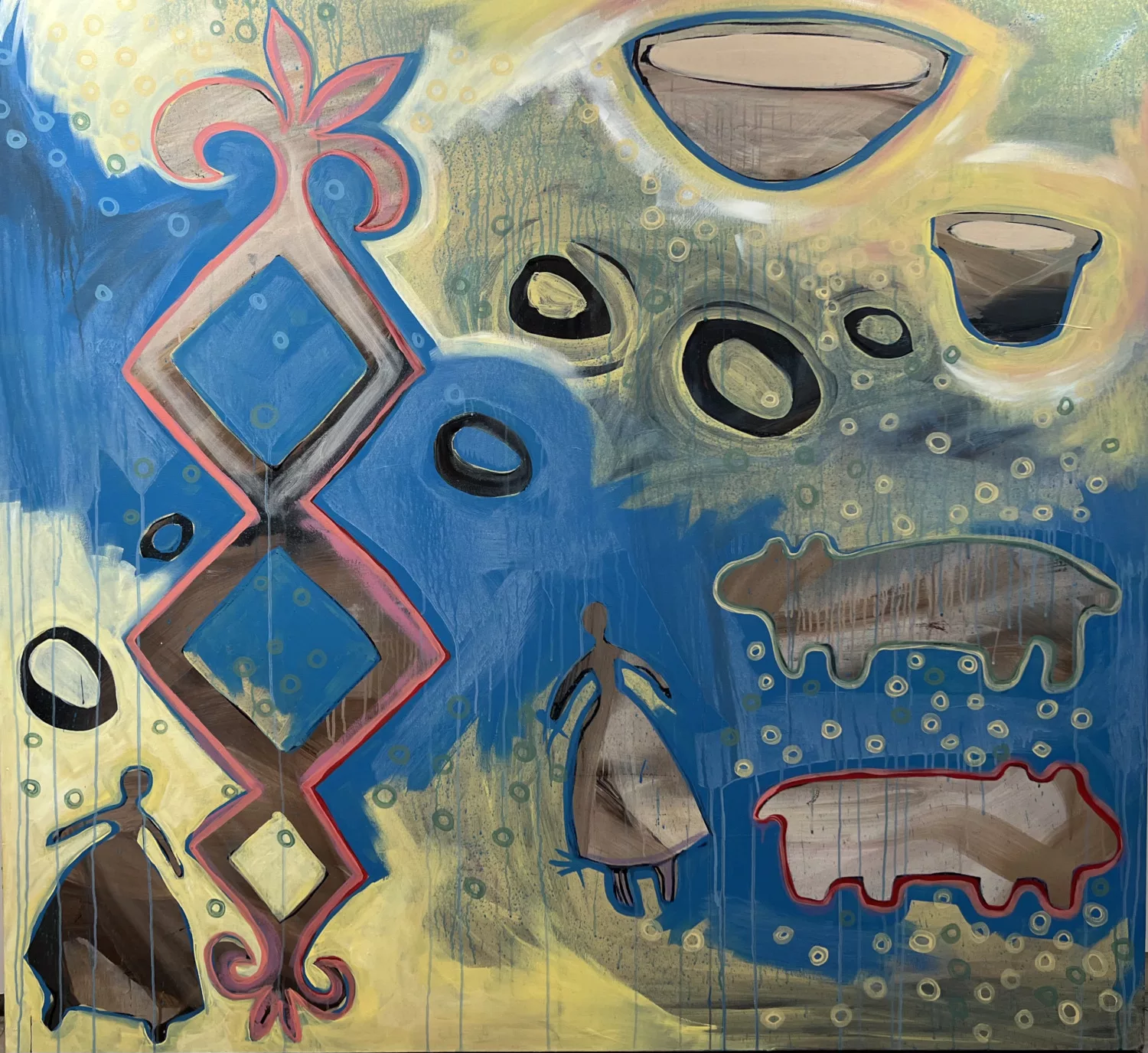 Melanie Yazzie was born in Ganado, Arizona and is of the Salt and Bitter Water clans of the Diné (Navajo). She received her Bachelor of Fine Arts degree in studio art from Arizona State University in 1990 and her Master of Fine Arts in printmaking from the University of Colorado in 1993. She has taught art courses at the Institute of American Indian Arts (1993–1999), the University of Arizona (2000–2006) and Boise State University (2002–2003). Since 2006, she has served in various teaching and leadership positions, including head of printmaking at the University of Colorado, Boulder. Since the early 1990s, M. Yazzie has worked in a variety of mediums, including printmaking, painting and ceramics. All of her works are inspired by her Diné heritage, family and personal history. Her work embraces the Diné saying to “walk in beauty”, which is rooted in the human aspiration of seeking out and creating both beauty and harmony in the world. Abstract depictions of animals, plants, cultural symbols and female forms are reoccurring motifs in her work.