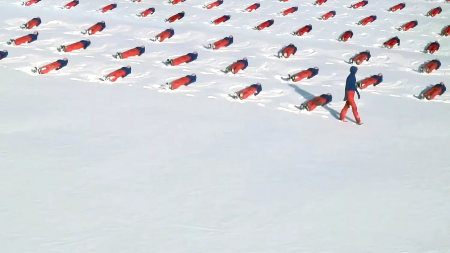 In 2010, following the earthquake in Haiti, S. Huber created the video-performance Haïti Chérie. Wearing a suit in the colours of the Haitian flag, she drew angels in the snow on the frozen Baltic Sea to commemorate the victims of a tragedy whose causes long predated the earthquake.