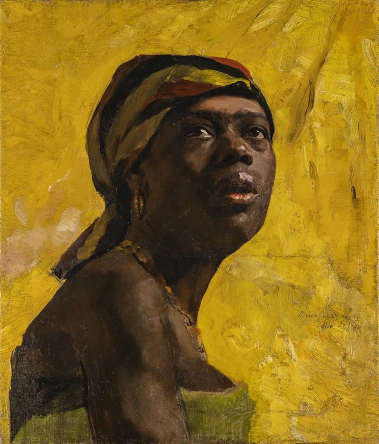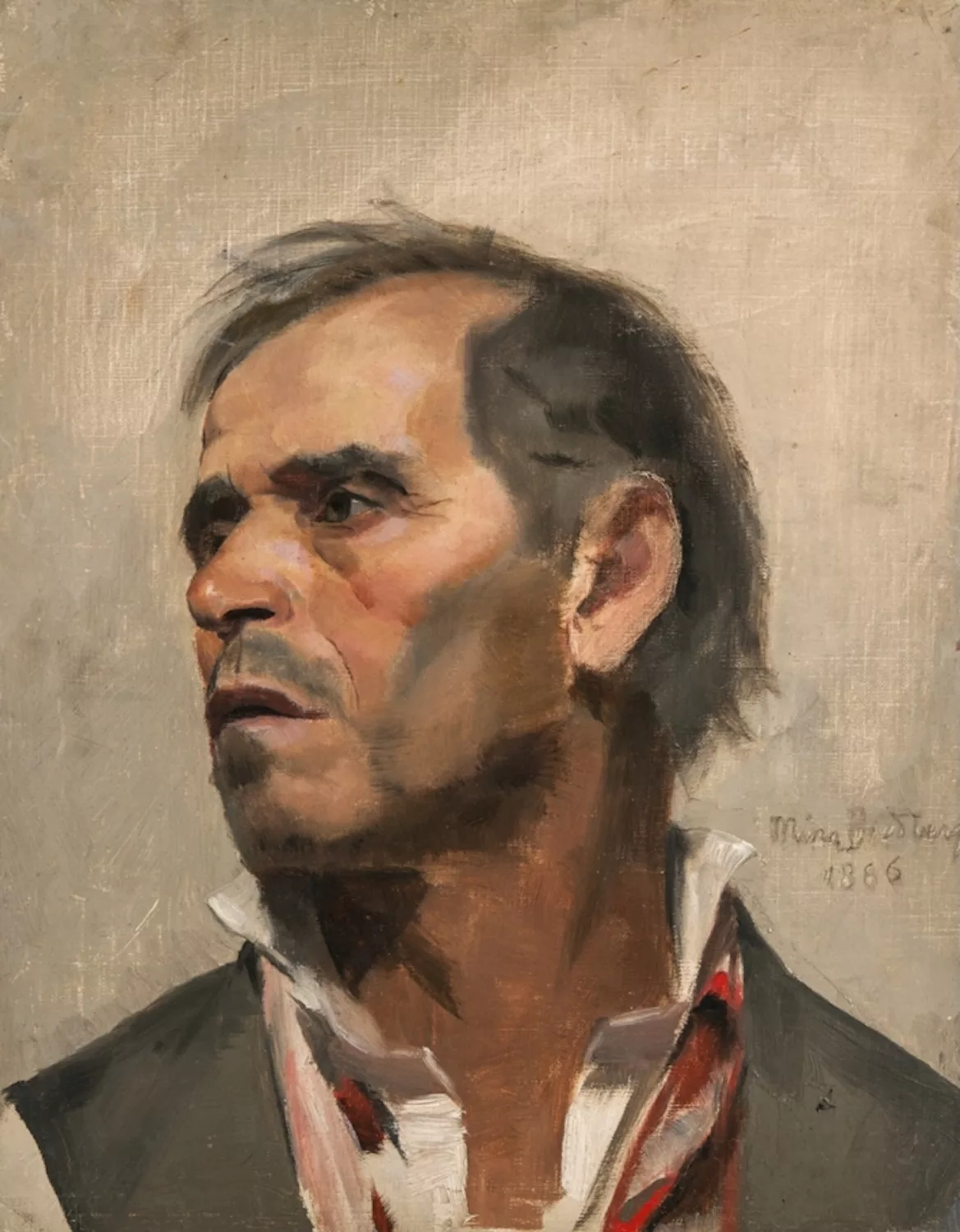 Her portraits not only tell intriguing stories about her sitters, but also illustrate her extensive transnational artistic network. For example, as a tribute to their close friendship she exhibited a portrait of L. F. Day and his wife Ruth Emma Morrish (1850–1929) in 1892 at the Exhibition of the Anonymous in Stockholm. Under the pseudonyms “New” and “Old”, she showed the portrait of the artist couple as well as a portrait of an Olga Jalensky at her easel (1886), also known as Russian Painter. Olga Zalenska. The portrait of O. Jalensky, dressed in black, reminded one critic of the style of Théodule-Augustin Ribot (1823–1891), and is suggestive of how M. Carlson-Bredberg was not afraid to experiment with technique.