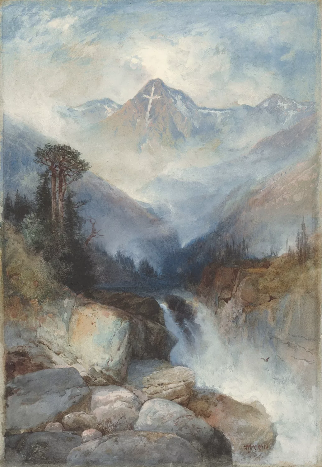 Thomas Moran, Mountain of the Holy Cross, 1890, watercolor and gouache over graphite on blue laid paper, 17 13/16 × 12 3/8 in. (45 × 31 cm), National Gallery of Art, Washington, D.C.